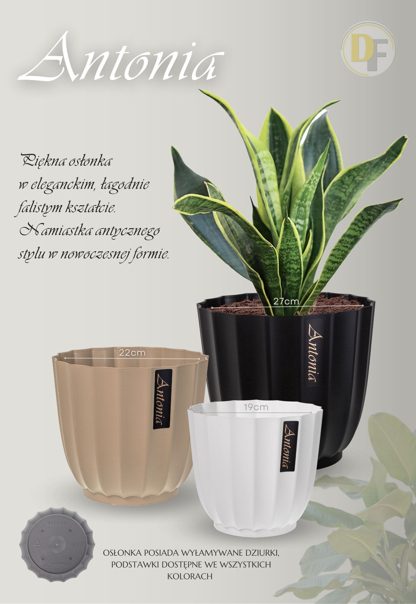 - Dostępne są również podstawki w kolorach osłonek Antonia.