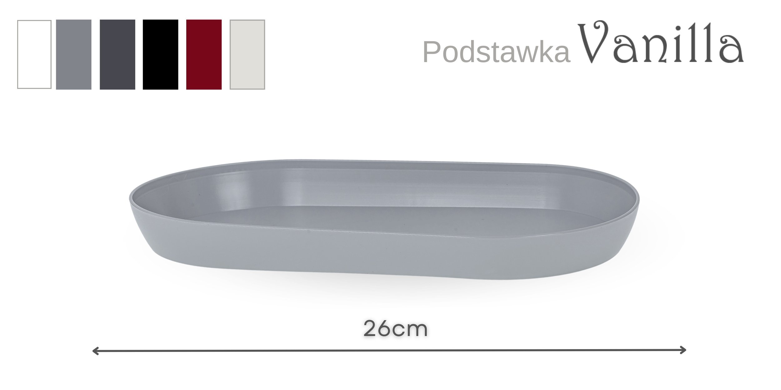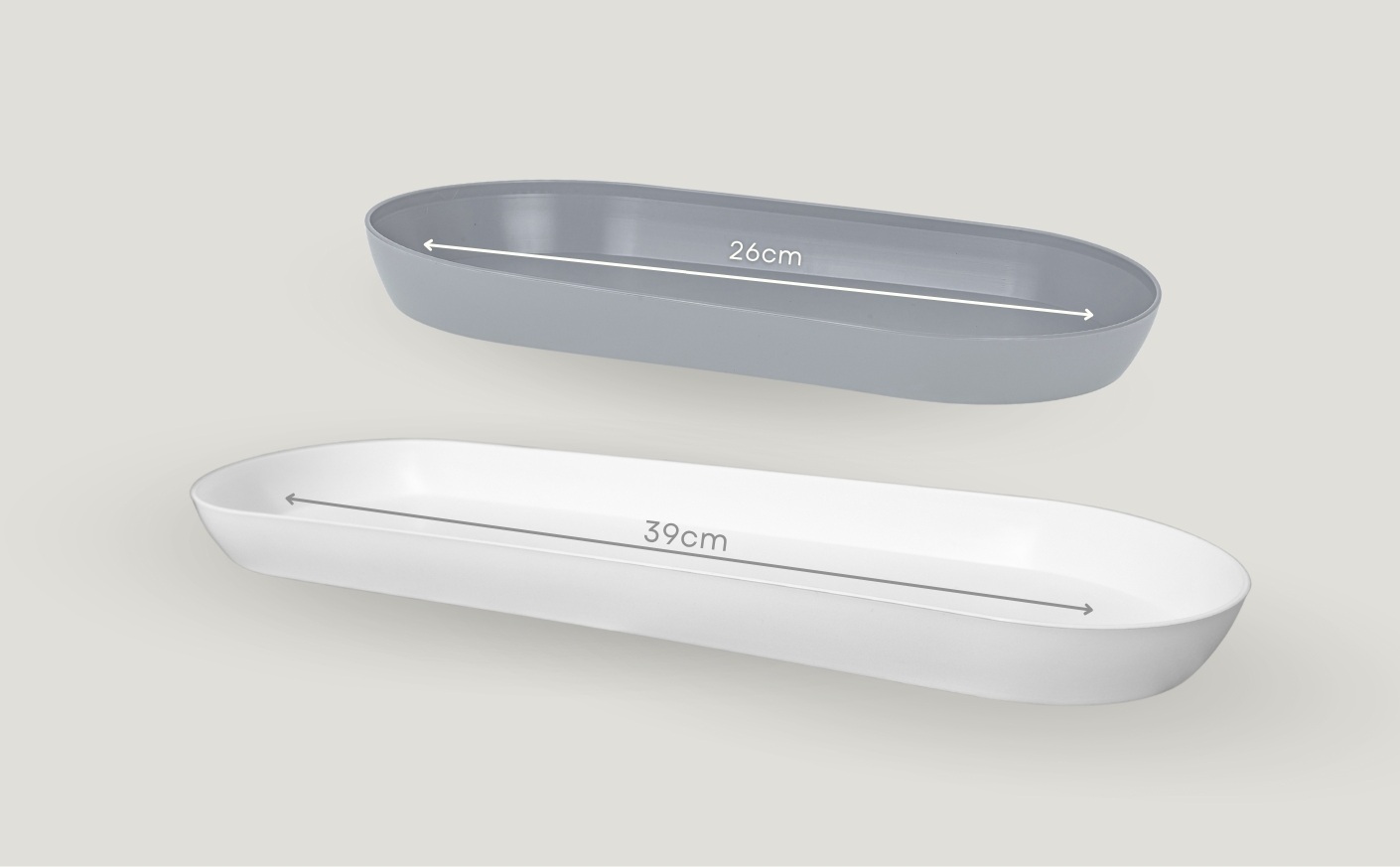 Podłużne podstawki. Solidne, głębokie, o powierzchni matowej, lekko satynowej. Dostępne w rozmiarze 26cm i 39cm.